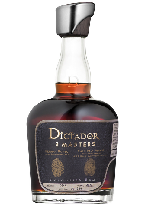DICTADOR TWO MASTERS RUM 44% Glenfarclas 1977 er produceret i et samarbejde mellem Callum A Fraser, Prouction Manager hos J & G Grant, Glenfarclas Distillery og Hernan Parra, Master Blender hos Dictador.