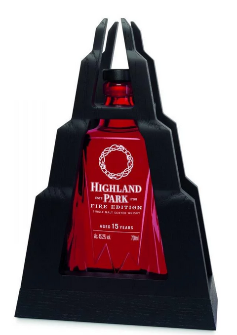 Med et oplag på 28.000 flasker ærer FIRE EDITION denne genfødsel – eller Ragnarok, om du vil. Whiskyen er for første gang i Highland Parks historie lagret på 100 % refill portvinsfade og tappet på specialdesignede flasker i højrødt glas. Her er tale om en spillevende single malt med en naturlig farve som varme flammer og noter af kanel, kræger, tørret frugt og chokolade, der danser på tungen, inden oplevelsen afsluttes med en sydende intens og frugtagtig finish.