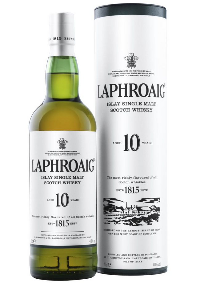 Laphroaig 10 Years Old er den originale Laphroaig og destilleres på samme måde i dag, som da Ian Hunter opfandt den for 75 år siden. I fremstillingen af Laphroaig tørres maltet byg over et bål af tørv, der kun findes på Islay. Det giver Laphroaig sin særligt fyldige smag. Når man nyder Laphroaig 10 Year Old, bemærker man først den markante røgede smag, der snart følges af et strejf af tang og en overraskende sødme.